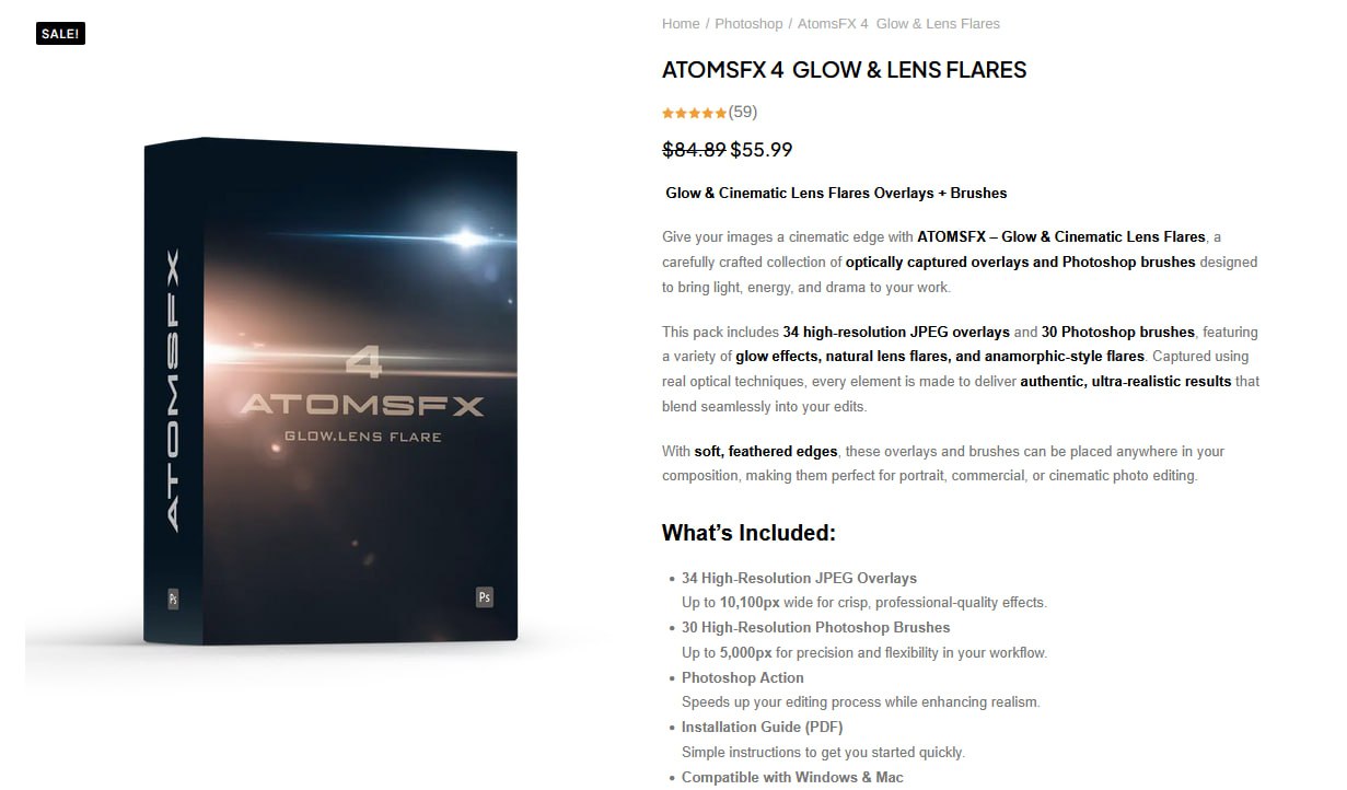 Presetcurator – AtomsFX 4 Glow & Cinematic Lens Flares Overlays + Brushes